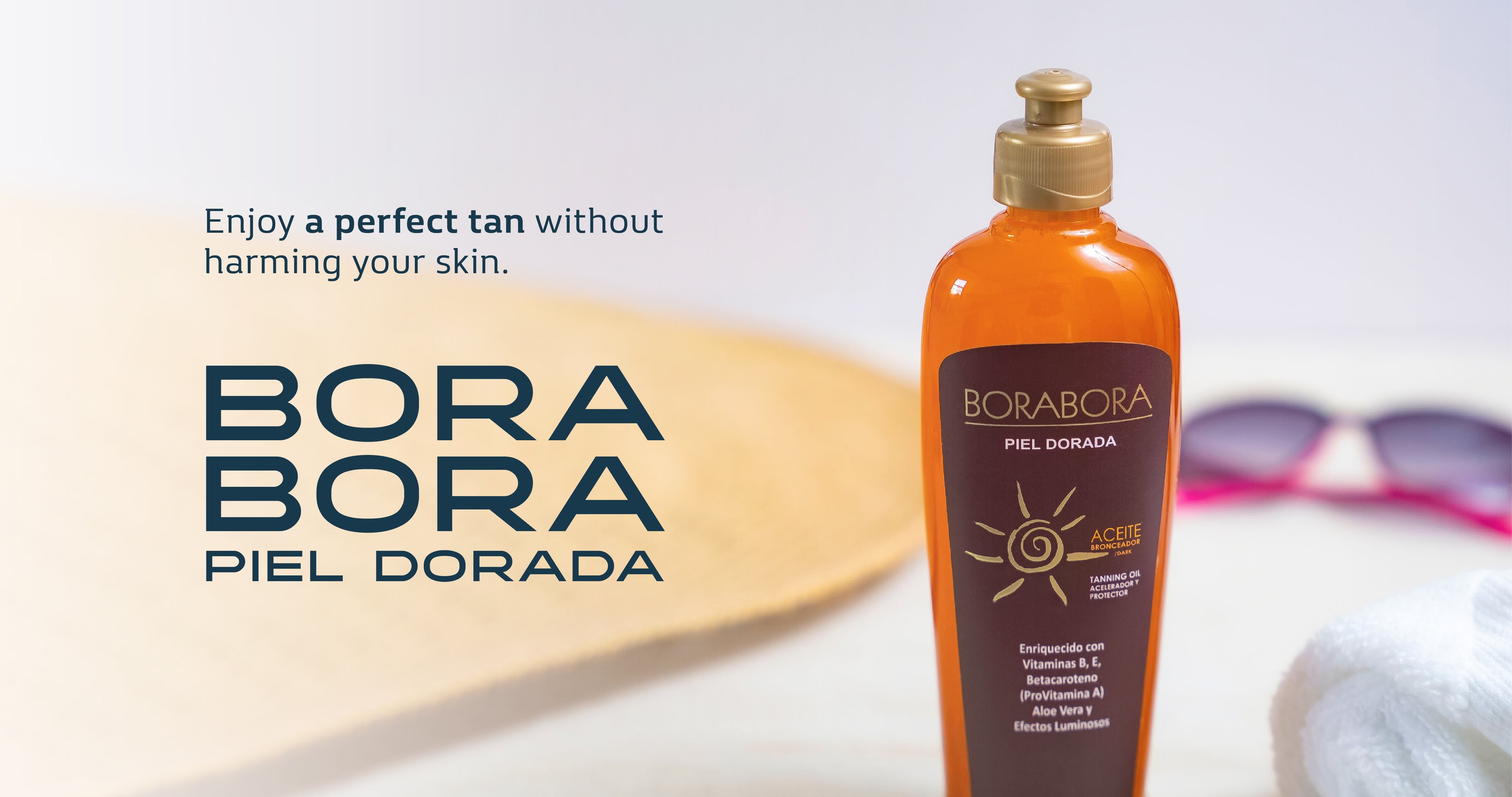 Intense / Dark tanning oil, enriched with vitamins B, E, Betacarotene (Provitamin A), aloe vera, luminous effects.
