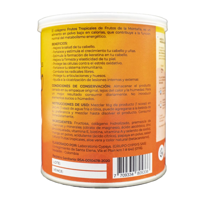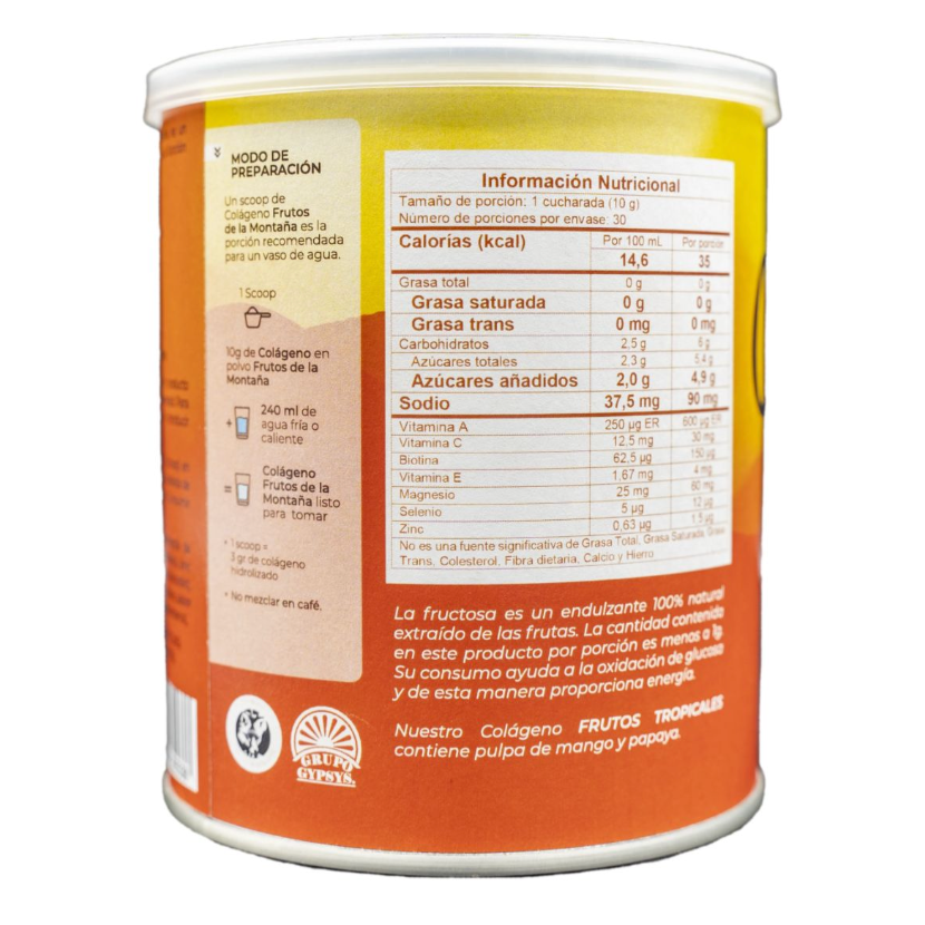 Each scoop of Frutos de la Montaña Collagen contains 3g of hydrolyzed collagen.